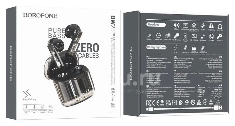 250руб.BT TWS Гарнитура BOROFONE BW-23 Transparent Black