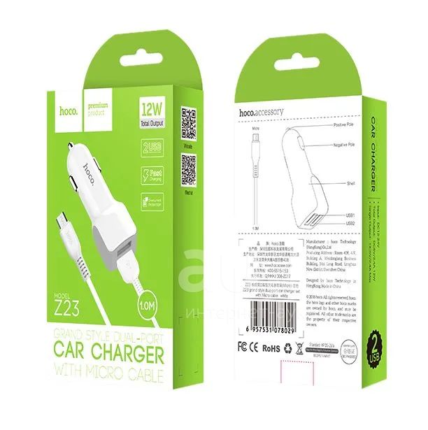 250руб.АЗУ HOCO Z23 USB dual port+MicroUSB 2.4a (White)