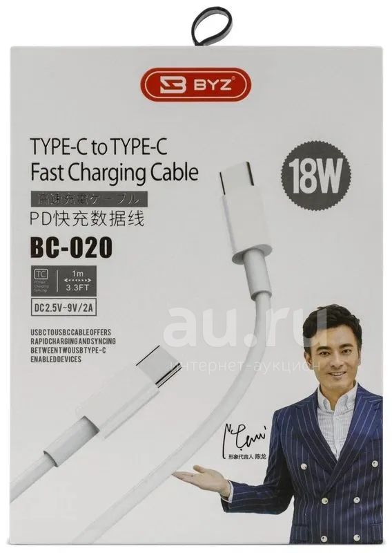250руб.КАБЕЛЬ PD BYZ BС-020 USB С->Type-C 18W White