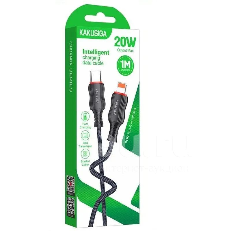 250руб.КАБЕЛЬ KAKUSIGA KSC-807 TYPE-C->LIGHTNING 20W 1m Black