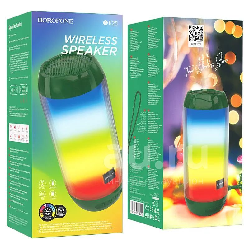 250руб.ПОРТАТИВНАЯ КОЛОНКА BOROFONE BR25 LIGHT GREEN