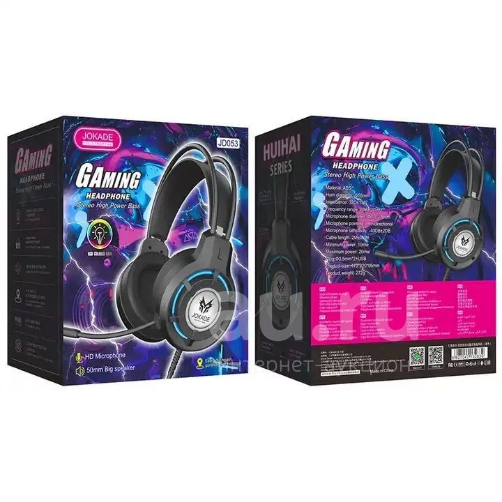 250руб.ГАРНИТУРА JOKADE JD053 RGB LED Full Size+Mic Black