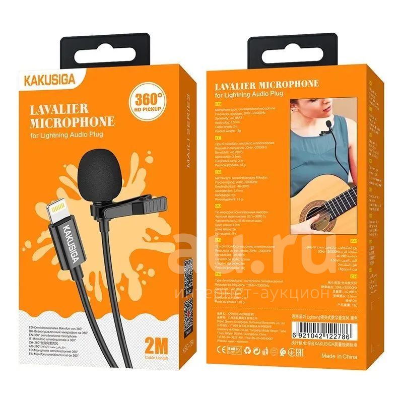 250руб.МИКРОФОН ПЕТЛИЧНЫЙ KAKUSIGA KSC-764 2mLIGHTNING BK