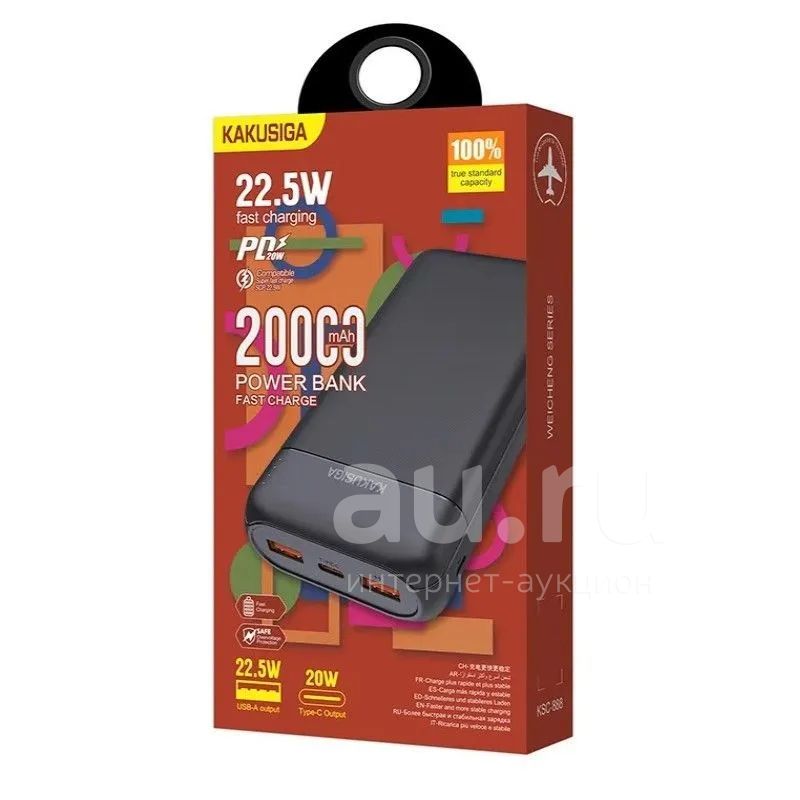 250руб.Power Bank KAKUSIGA KCS-888 20000mAh PD22,5W Black