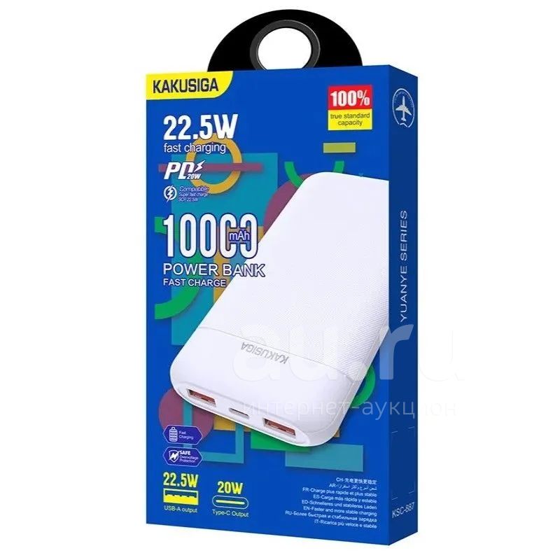 250руб.Power Bank KAKUSIGA KCS-887 10000mAh PD20W White