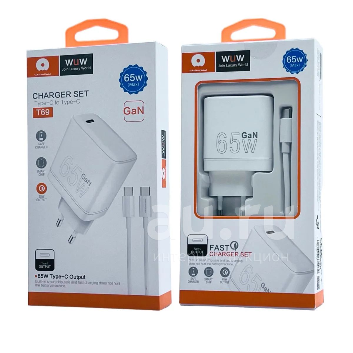 250руб.СЗУ WUW T69 USB-C PD TYPE-C 64W GaN White