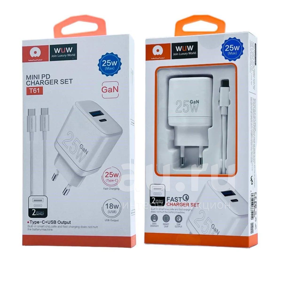 250руб.СЗУ WUW T61 1A1C PD TYPE-C 25W GaN White