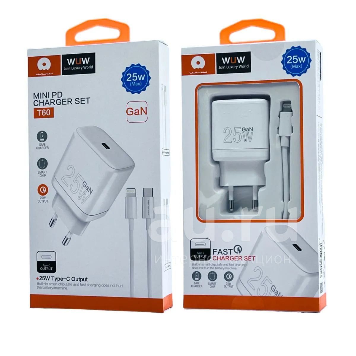 350руб.СЗУ WUW T60 USB-C25W PD Lightning 25W GaN White
