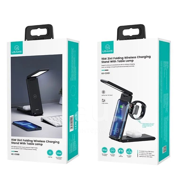 Беспроводное ЗУ USAMS US-CD181 3in1 15W Black