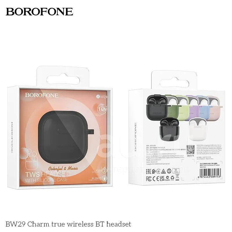 250руб.BT TWS Гарнитура BOROFONE BW-29 Black + Black Case