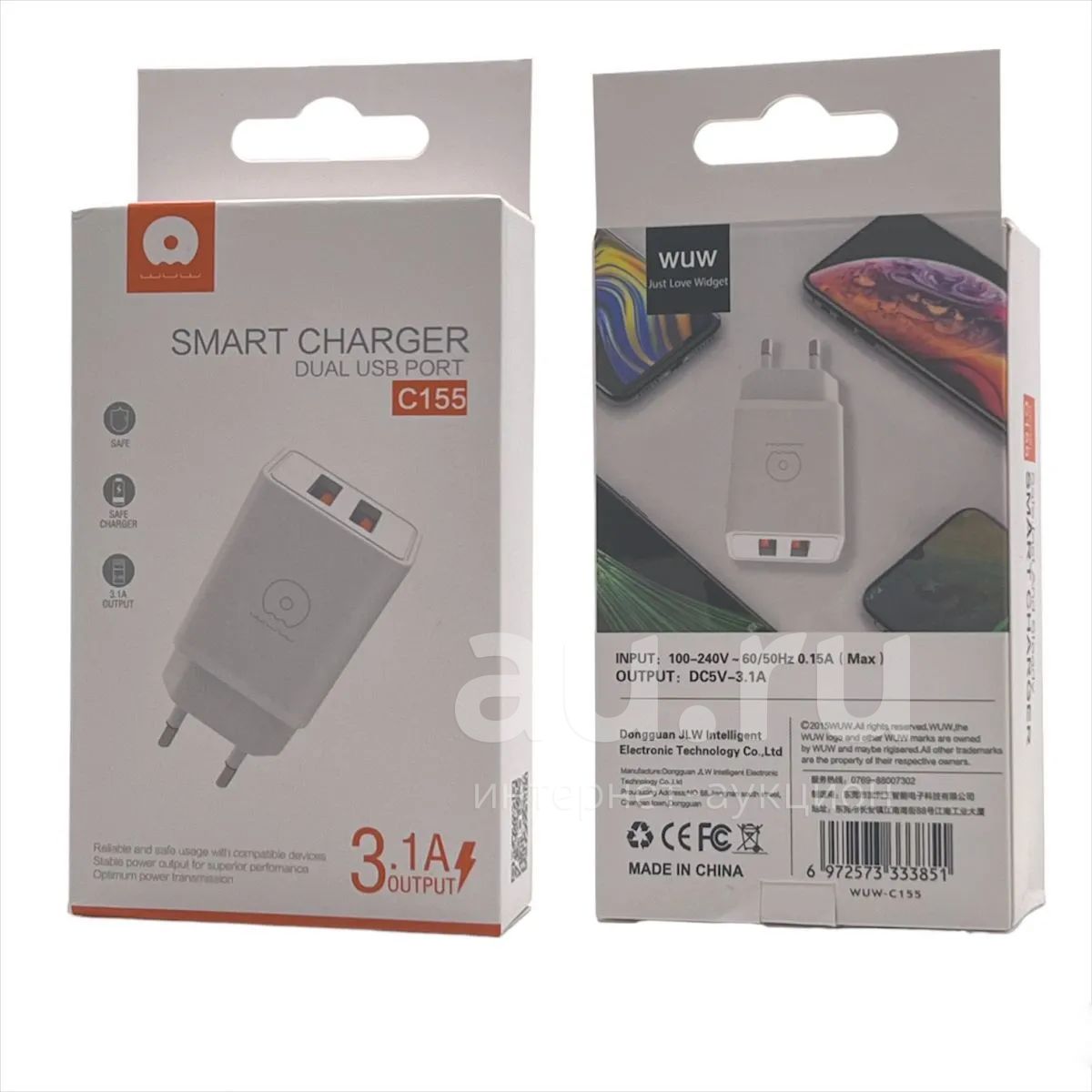250руб.СЗУ WUW C-155 2*USB 3.1A White