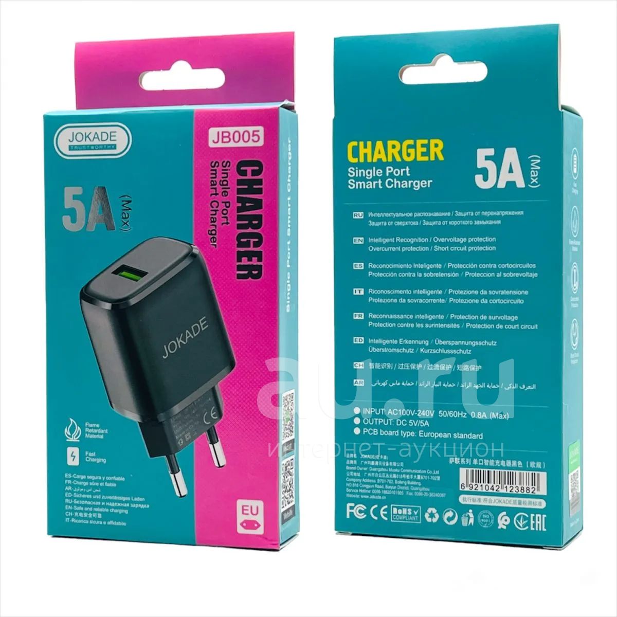 250руб.СЗУ JOKADE JB005 1*USB 5A FAST CHARGE Black
