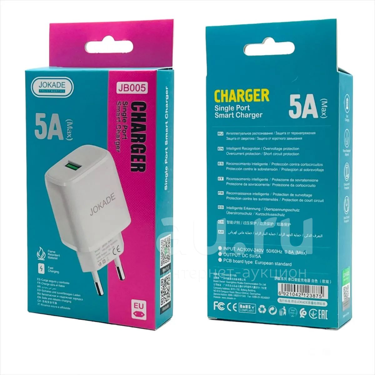 250руб.СЗУ JOKADE JB005 1*USB 5A FAST CHARGE White