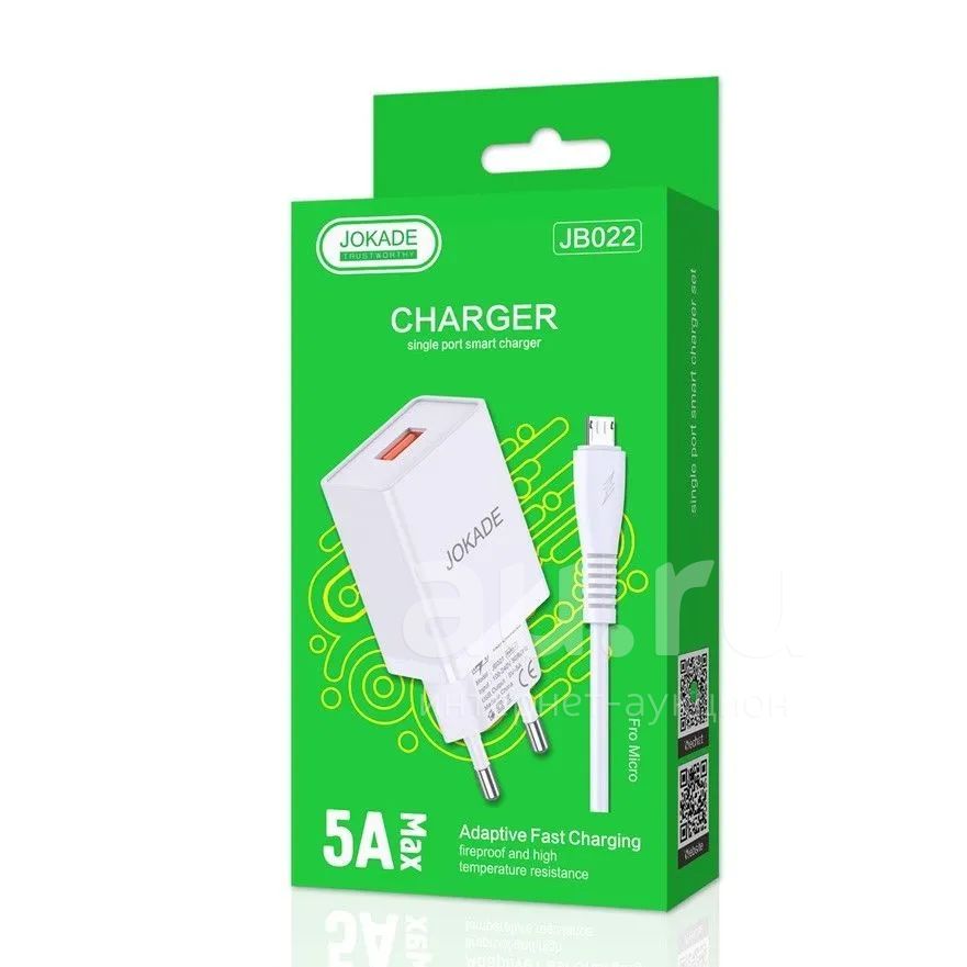 250руб.СЗУ JOKADE JB022 1*USB + microUSB 5A White