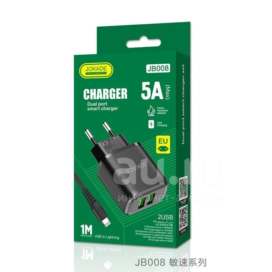350руб.СЗУ JOKADE JB008 2*USB +LIGHTNING 5A Black