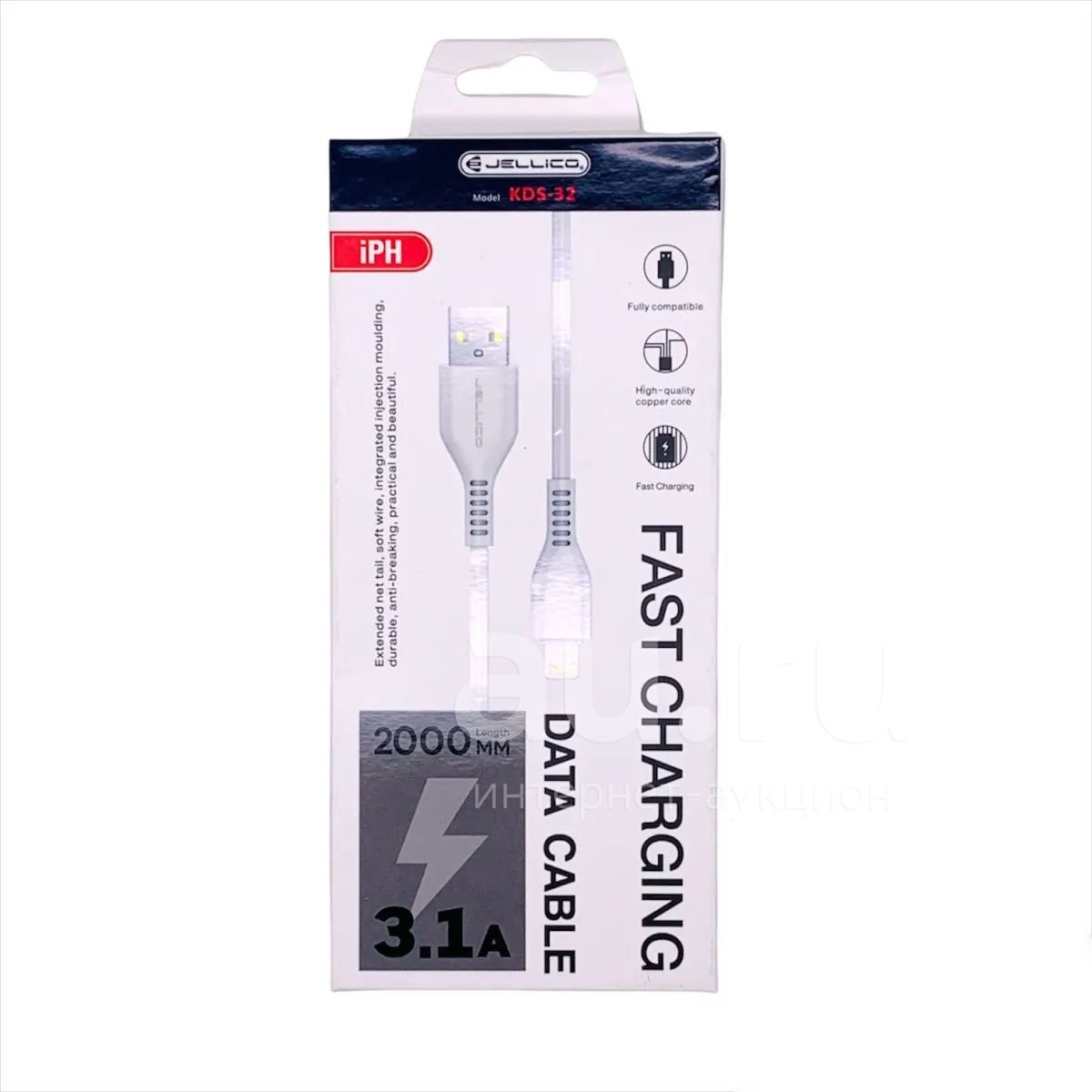 250руб.КАБЕЛЬ JELLICO KDS-32 3.1A 2m lightning (White)