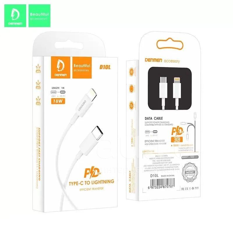 250руб.КАБЕЛЬ DENMEN D10L TYPE-C->LIGHTNING WHITE PD20W 1m