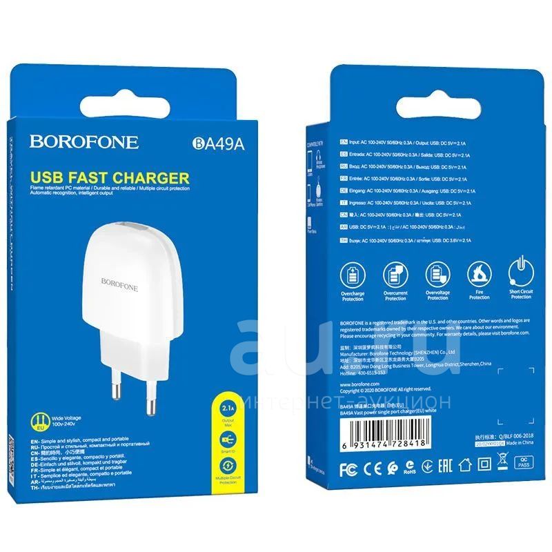 СЗУ BOROFONE BA-49A USB 2.1A White