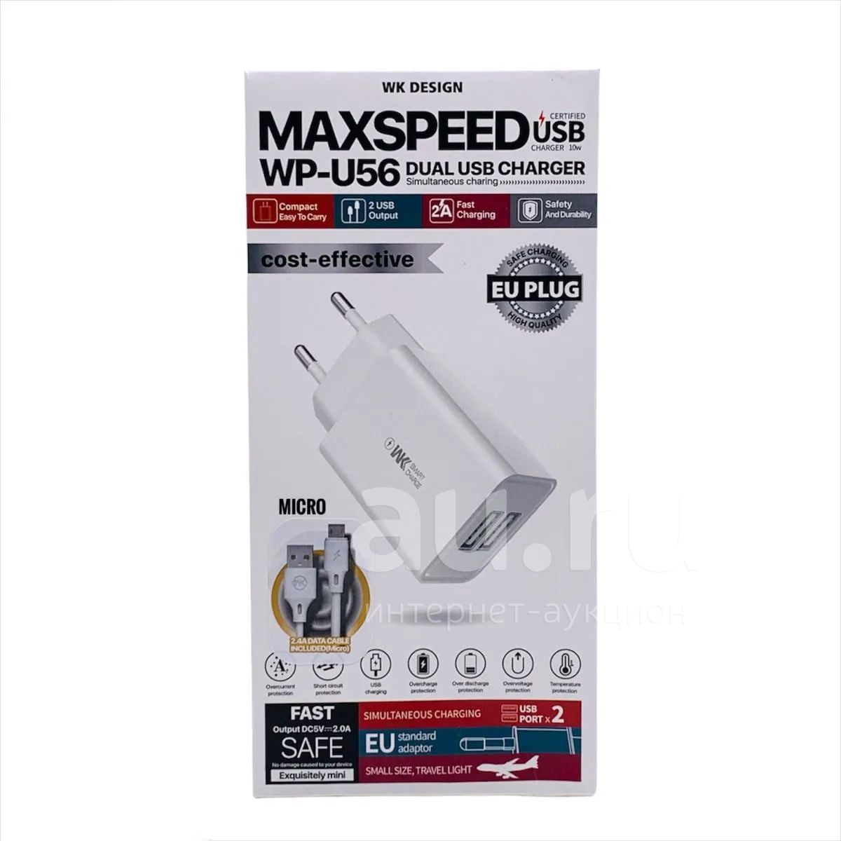 350руб.СЗУ WEKOME WP-U56 2xUSB 2A+Micro-USB White