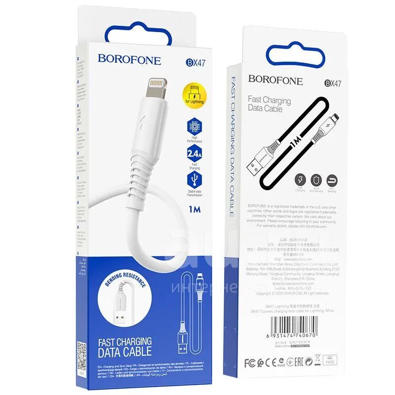250руб.Кабель BOROFONE Lighting BX-47 1m White