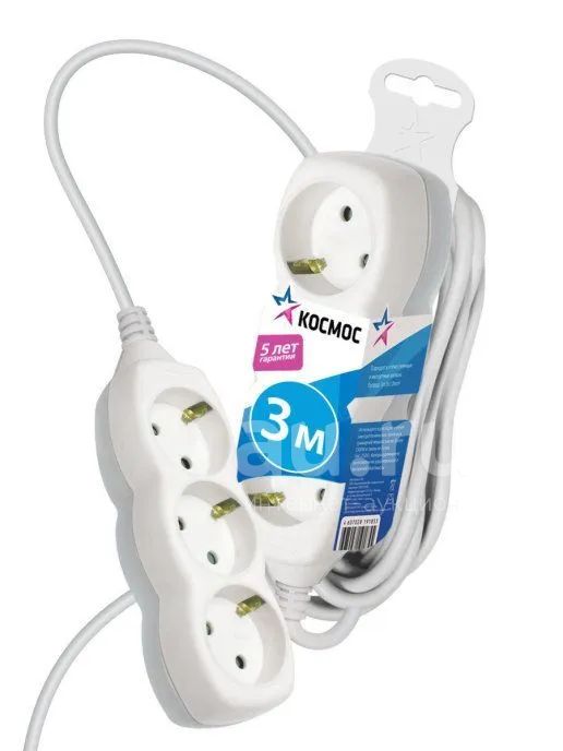 250руб.УдлинительТМ Союз 3гн зазем.вкл. 10А (3м) 481S-7303