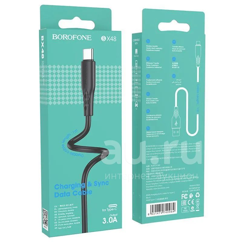 250руб.Кабель BOROFONE TYPE-C BX-48 1m Black