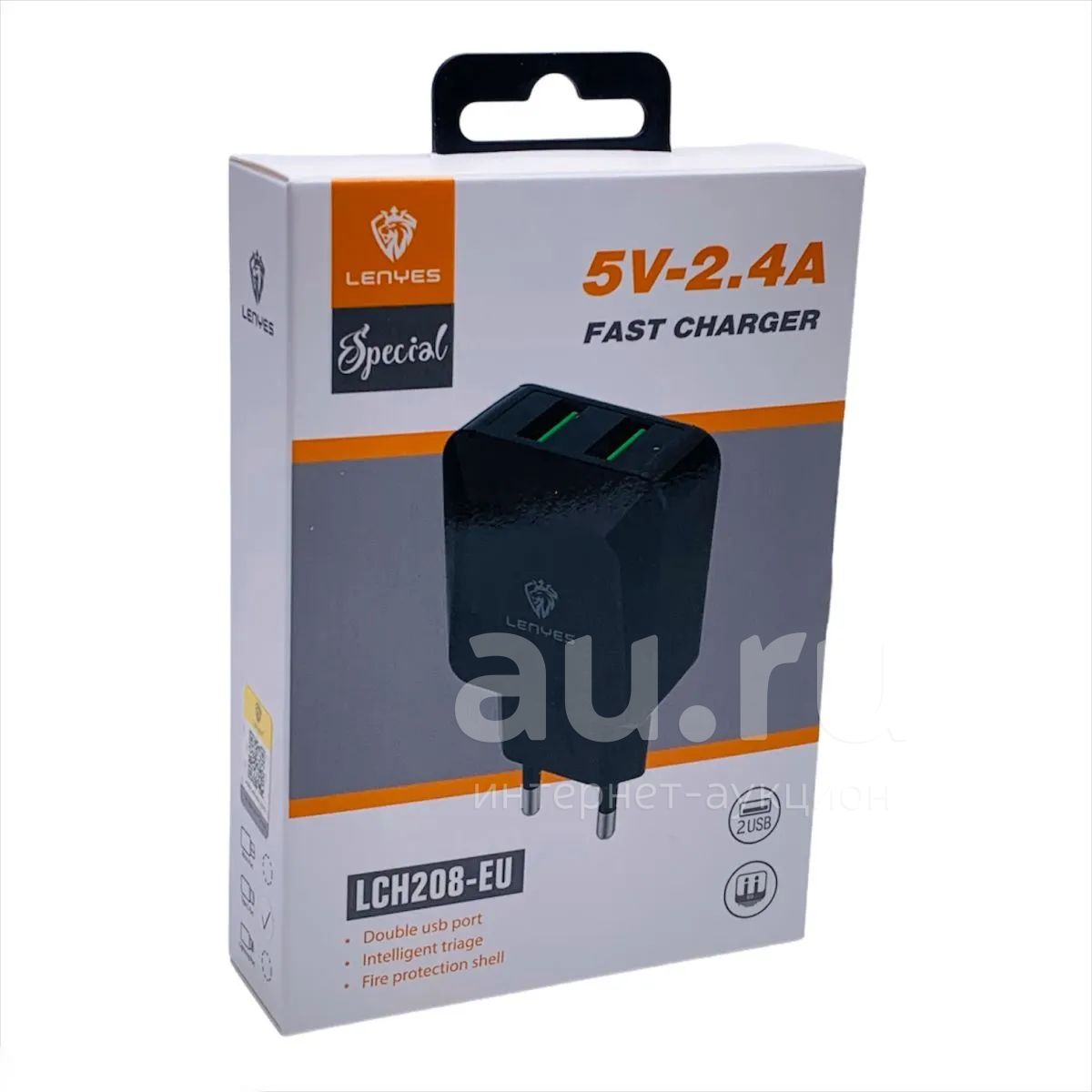 250руб.СЗУ LENYES LCH208-EU 2USB LIGTHNING 5V-2.4A BK