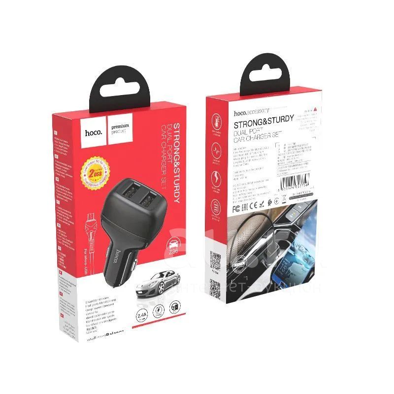 АЗУ HOCO Z36 USB dual port 2.4A+microUSB (Black)