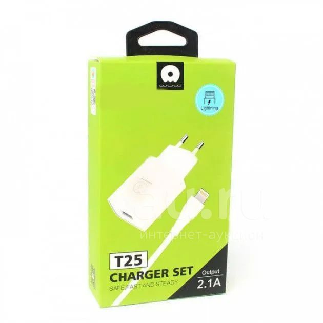 350руб.СЗУ WUW T-25 1*USB 2.1A + Lighting (White)