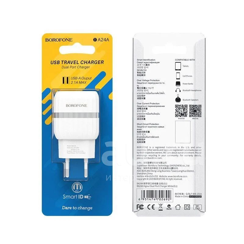 250руб.СЗУ BOROFONE BA-24A 2*USB 2.4A White