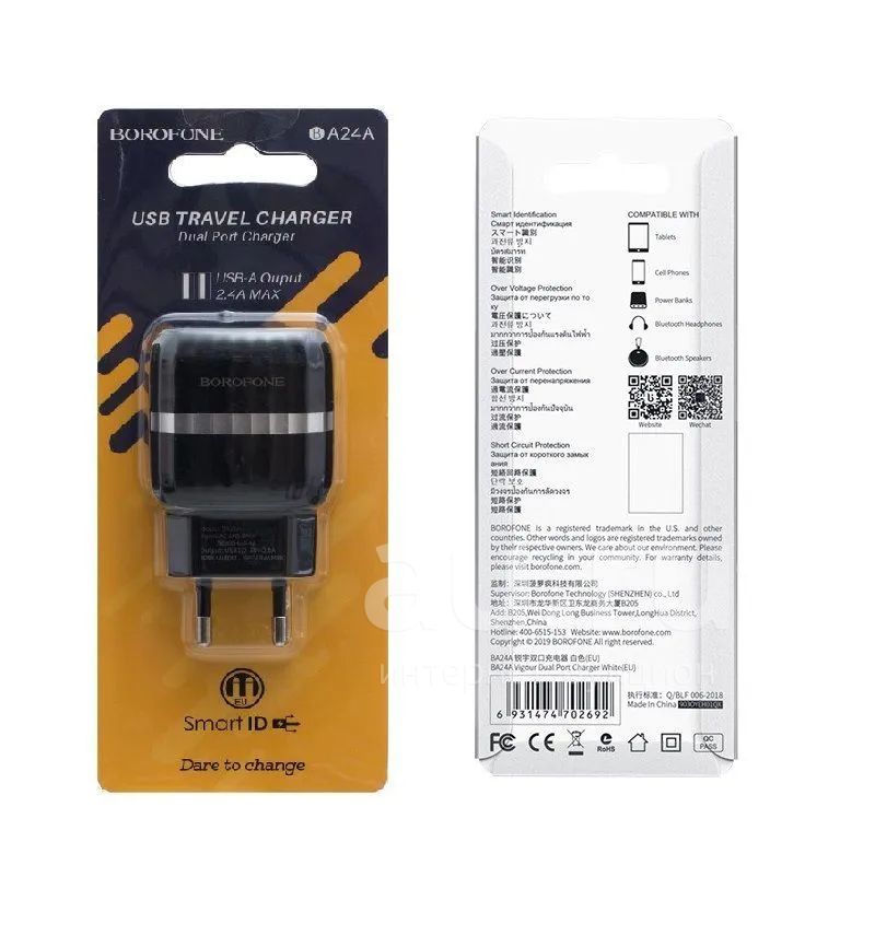 250руб.СЗУ BOROFONE BA-24A 2*USB 2.4A Black