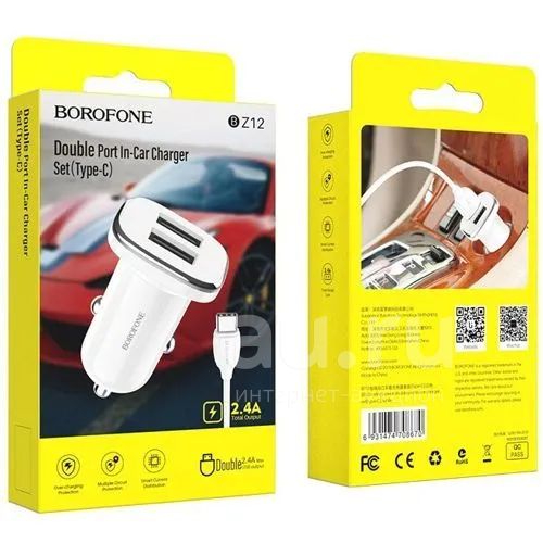 АЗУ BOROFONE BZ-12 2*USB+Type-C 2.4A White