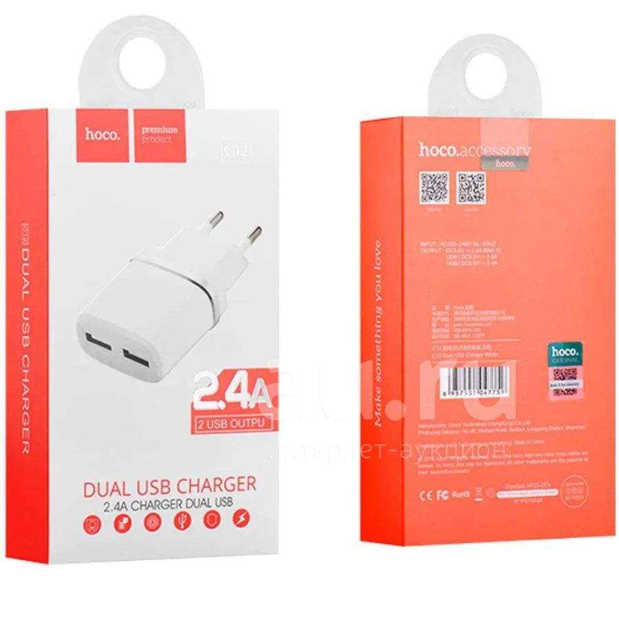250руб.СЗУ HOCO C12 dual USB port 2.4A (White)