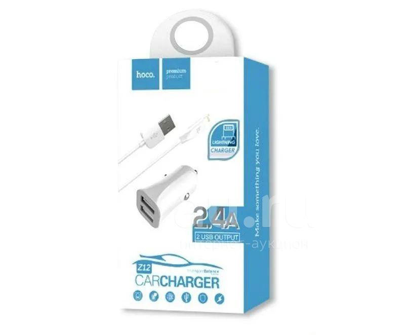 АЗУ HOCO Z12 USB dual port 2.4A + Lighting (White)
