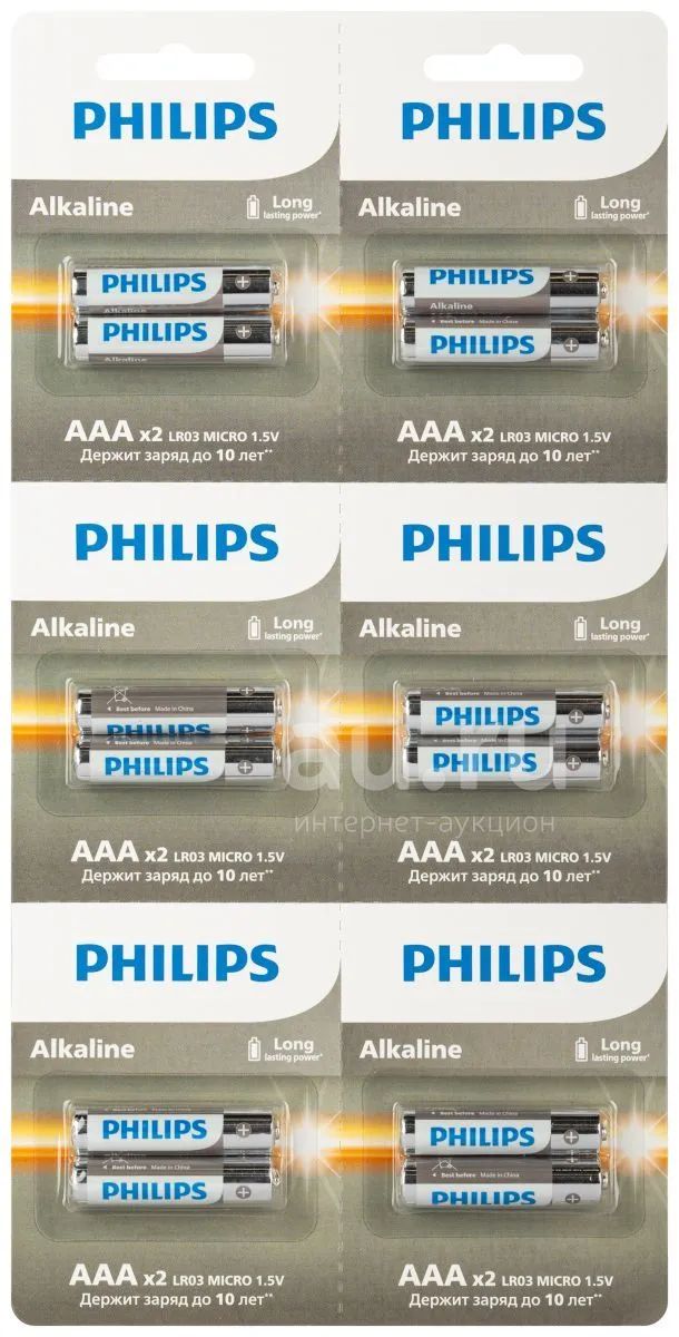 500руб.Батарейка Philips LR03 (2x6) BL Entry Alkaline Отрывные (12) (96)