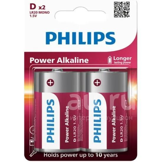 500руб.Батарейка Philips LR20/2BL Power Alkaline (24)