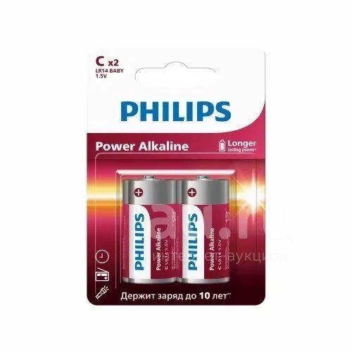 500руб.Батарейка Philips LR14/2BL Power Alkaline (24)