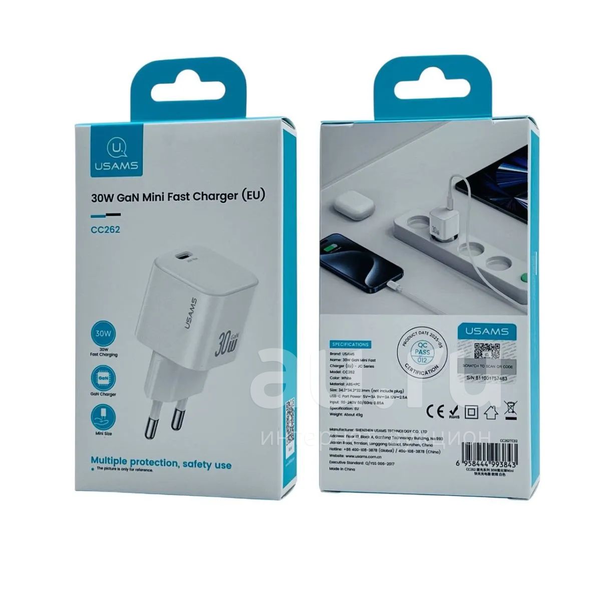 250руб.СЗУ USAMS US-CC262 USB-C 30W GaN FAST CHARGE White