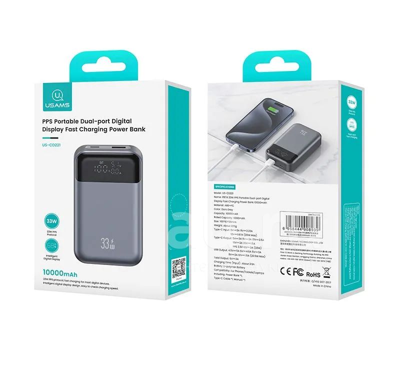 250руб.Power bank USAMS US-CD221 33W QC3.0+PD FC 10000 mAh