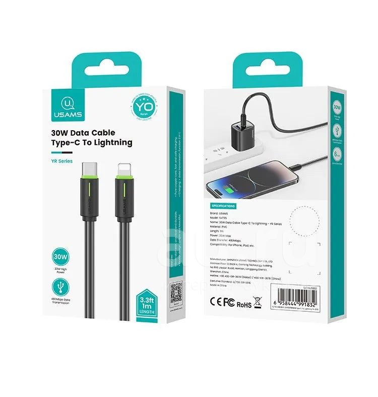 Кабель USAMS Type-C-->Lightning YR SJ735 PD 1m Black
