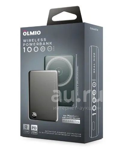 250руб.Внешний АКБ OLMIO QM-16, 10000mAh, 20W PowerDelivery, 15W wireless, с...
