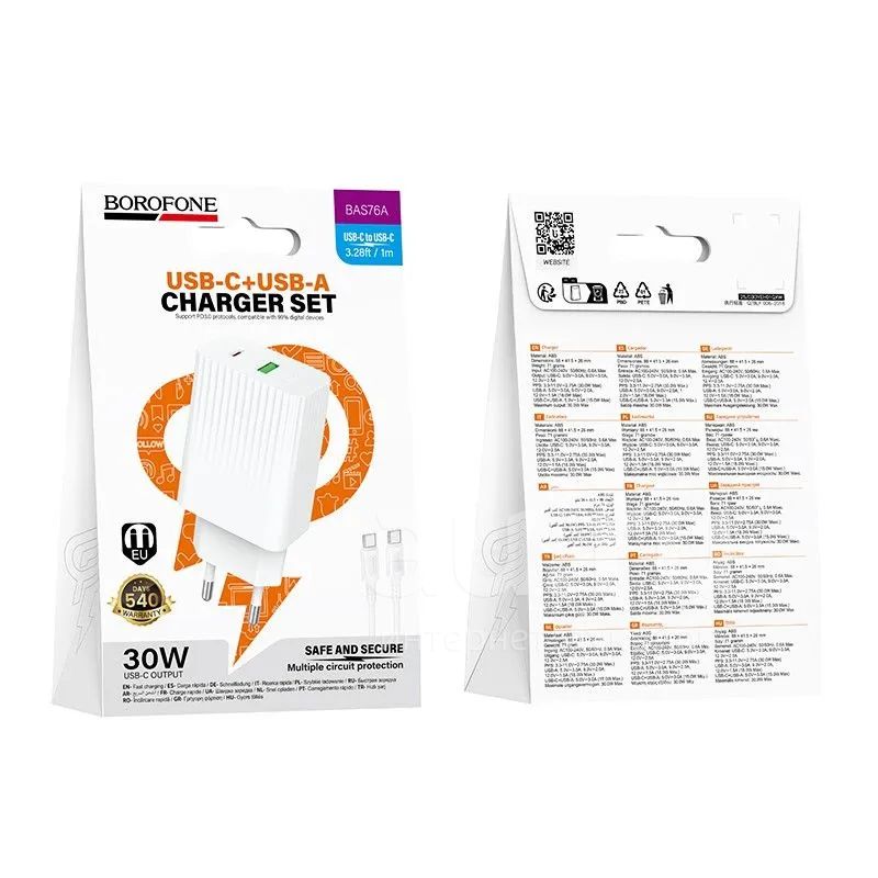 250руб.СЗУ BOROFONE BAS76A 1A1C+Type-C(C+C) QC3.0/PD 30W White