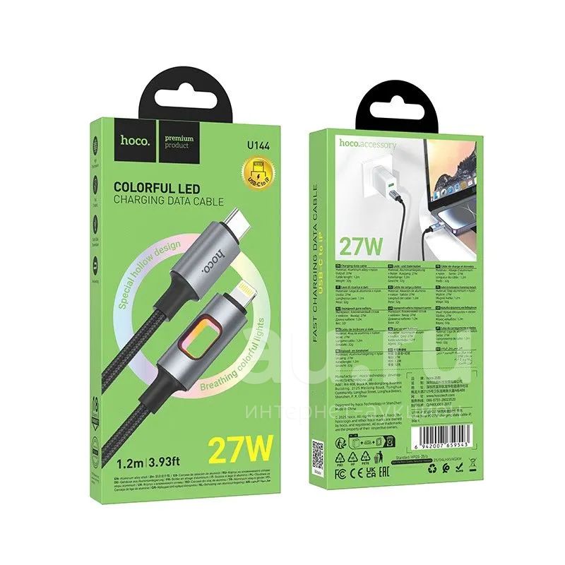 Кабель HOCO U144 TYPE-C->LIGHTNING 1.2m 27W BK