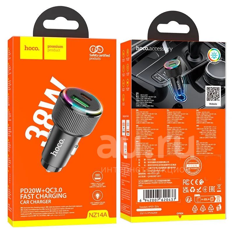 250руб.АЗУ HOCO NZ14A 1A1C 38W PD+QC3.0 (Black)