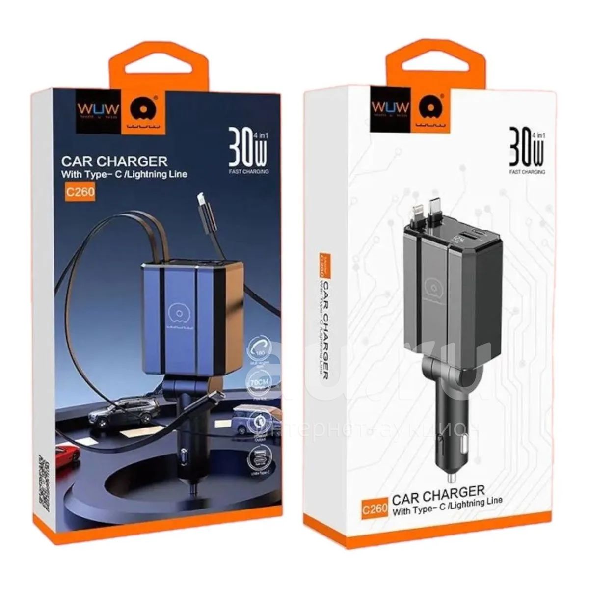 250руб.АЗУ WUW C260 1A1C+Type-C; Lightning LED QC 3.0 30W Black