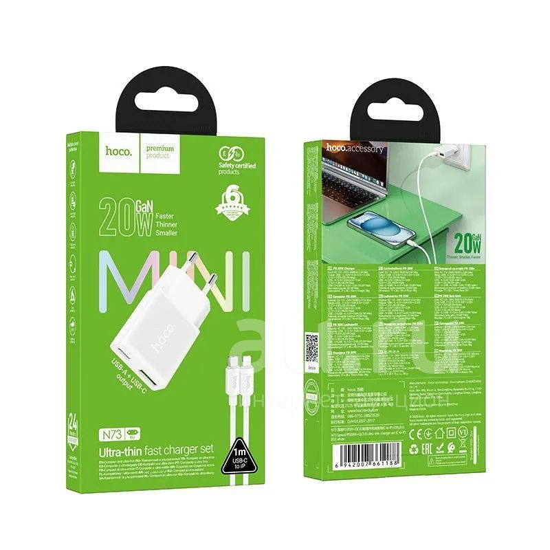СЗУ HOCO N73 1A1C+Lightning(C-IP) GaN QC3.0/PD 20W White