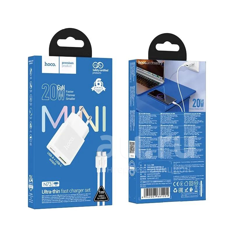 250руб.СЗУ HOCO N73 1A1C+Type-C(C-C) GaN QC3.0/PD 20W White