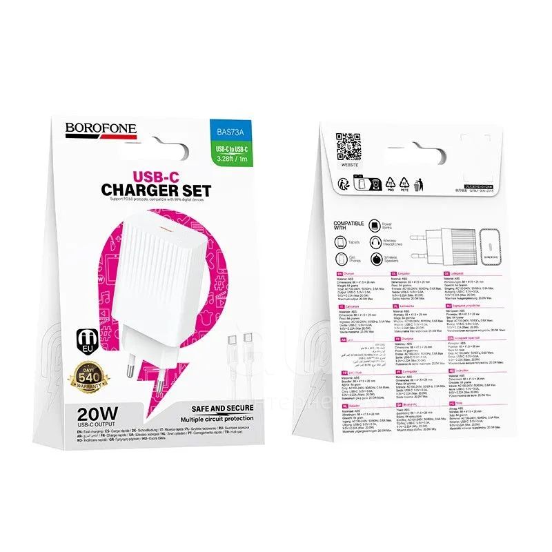 СЗУ BOROFONE BAS73A 1C+Type-C(C-C) QC3.0/PD 20W White