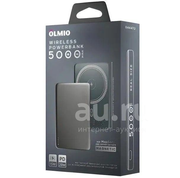250руб.Внешний АКБ OLMIO QM-15, 5000mAh, 20W PowerDelivery, 15W wireless, се...