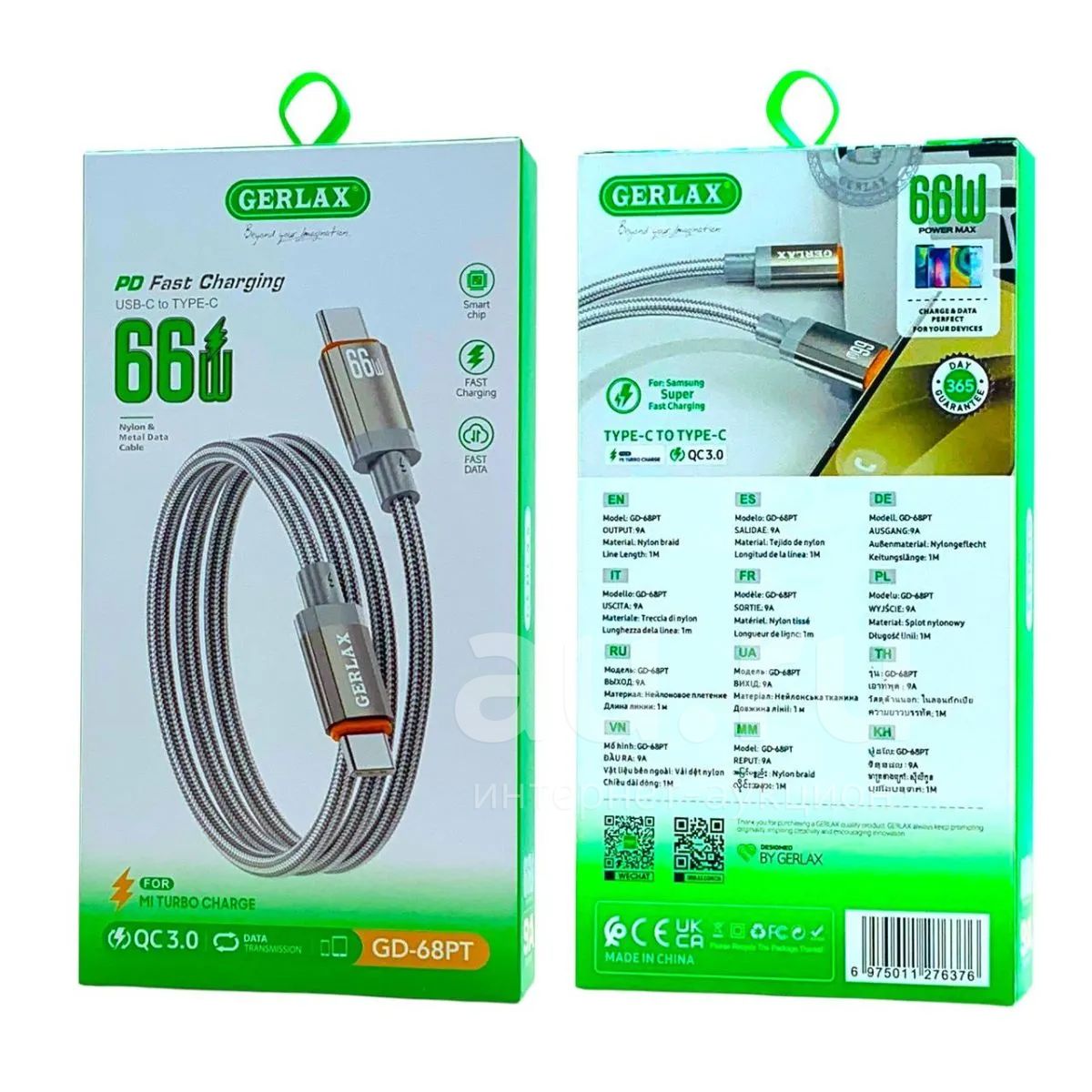 250руб.Кабель GERLAX GD-68PT TYPE-C-TYPE-C 66W 1m Silver